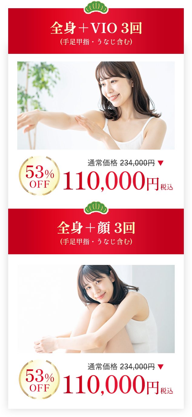 医療脱毛 全身+VIO 3回【税込¥110,000】
