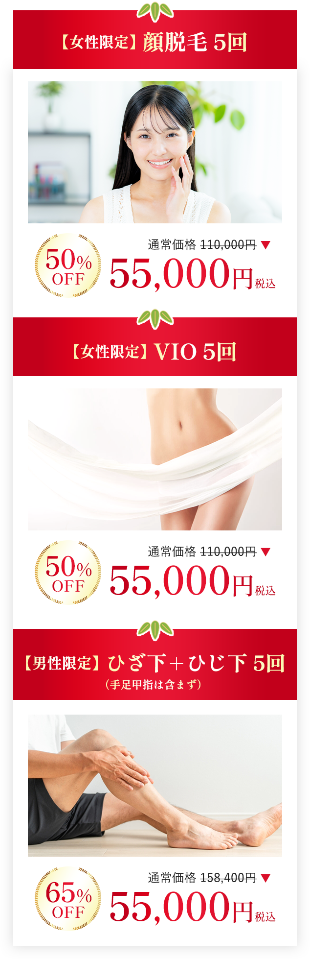 【女性限定】顔脱毛 5回 / VIO脱毛 5回