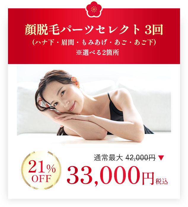 医療脱毛 顔パーツセレクト 3回【税込¥33,000】