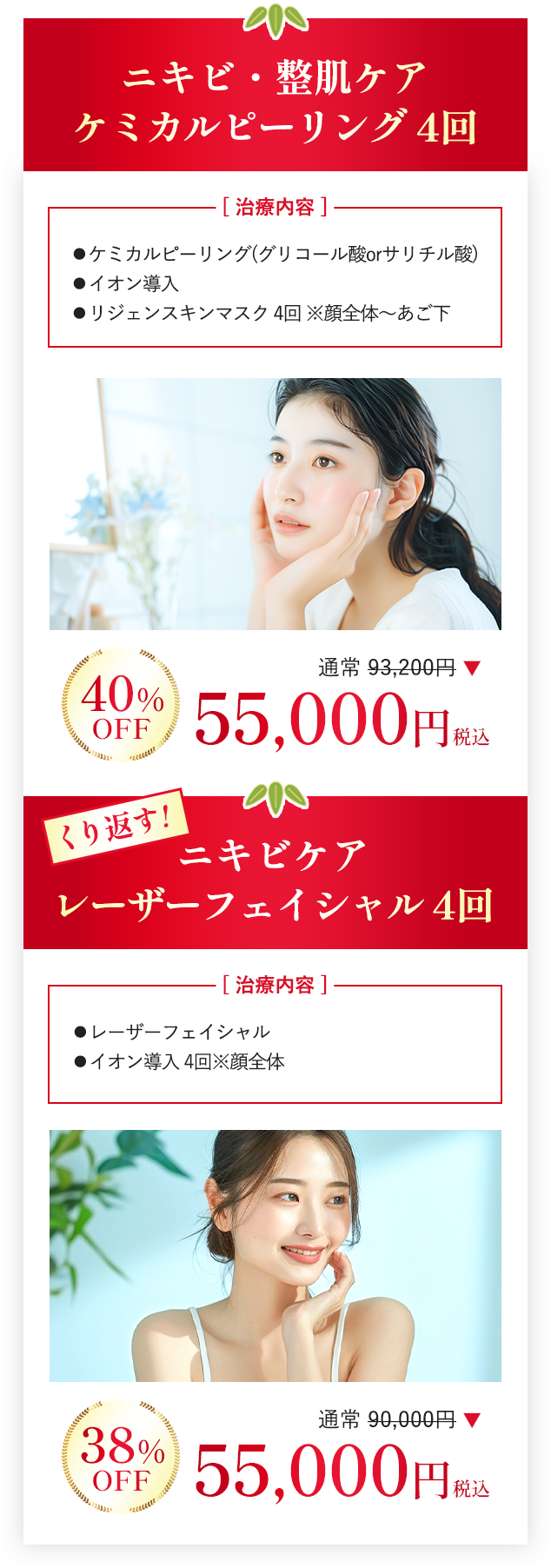 フェイシャル ニキビ・整肌ケア ケミカルピーリング 4回【税込¥55,000】