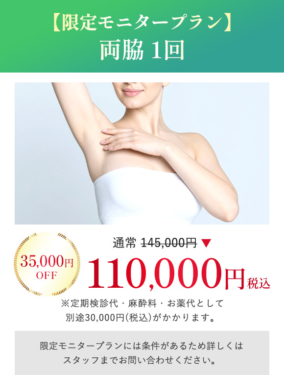 ミラドライ限定モニタープラン 両脇1回【税込110,000円】