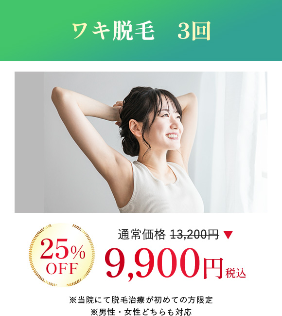 医療脱毛 ワキ脱毛 3回【税込9,900円】