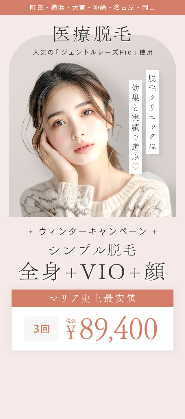 ※肌の状態や体質によって脱毛ができない場合もあります。