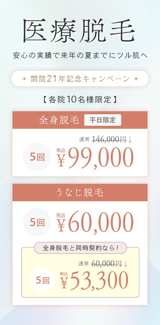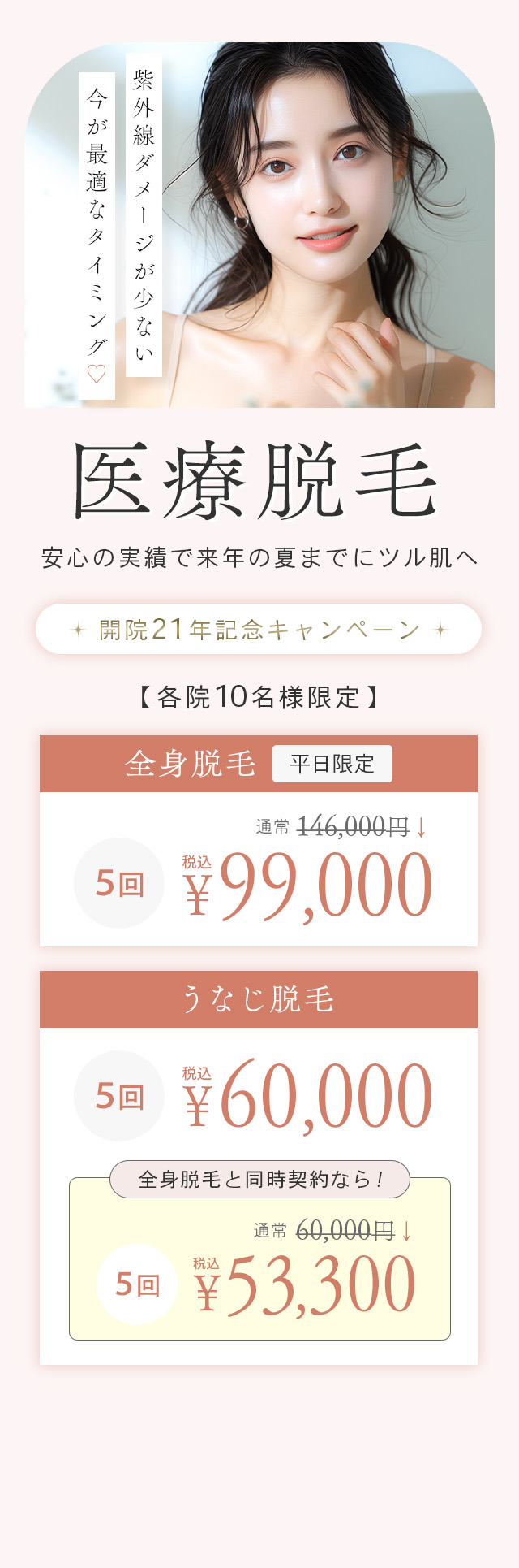 ※肌の状態や体質によって脱毛ができない場合もあります。