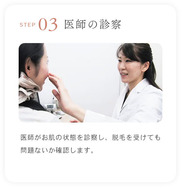 当院の医療脱毛はお肌への影響はほとんど与えません。また、医師の診察のもと脱毛を行いますのでご安心ください。